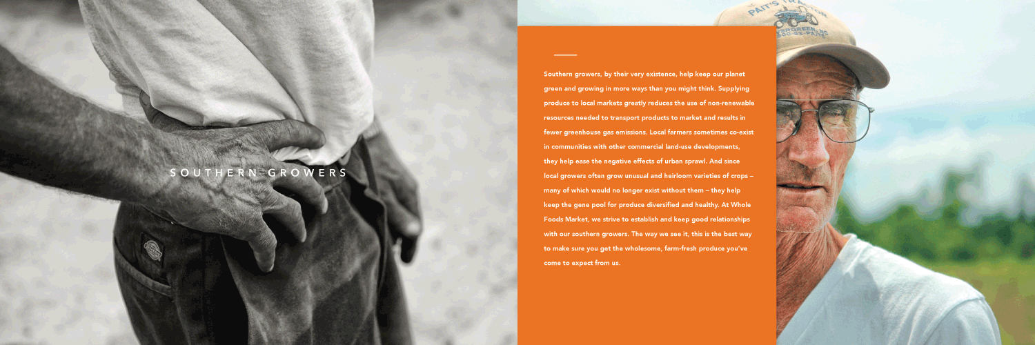 Whole Foods Market is proud of their partnerships with local and southern suppliers. Sharing their stories with customers is important and a key core value. Not only does it give insight on how the food Whole Foods offers is grown, raised, or made; it allows customers to get to know the makers and their history, values, innovations, and the traditions they're starting or keeping alive. Celebrating local and southern partners is an annual event for Whole Foods Market, corresponding with the peak of the season for Southern produce. The campaign's scope included all varieties of media. Along with in-store components, the strategy called for social, digital, traditional advertising, and external events.